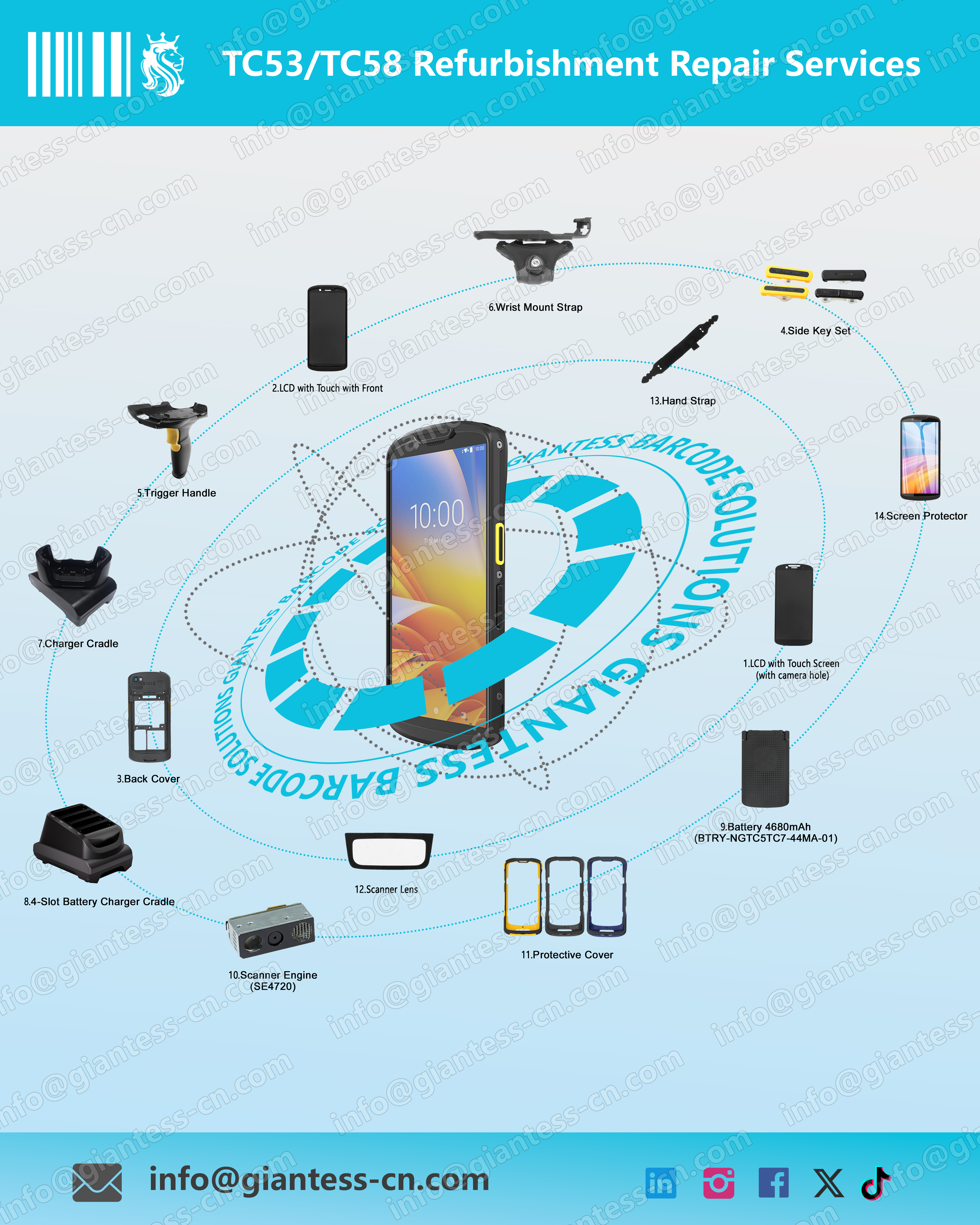 We specialize in providing high-quality aftermarket repair parts and accessories for Zebra mobile computers, including batteries, charging cradles, scan engines, replacement screens, keypads, and protective cases. Our components are designed to restore your Zebra devices to peak performance, minimize downtime, and extend the lifespan of your enterprise mobility investments. Whether you need replacement parts for routine maintenance or critical repairs, we deliver reliable, cost-effective solutions to keep your operations running smoothly.